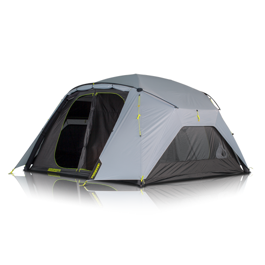 The Aerospeed 10 Air Tent is a lightweight, portable 10 person inflatable tent designed for families who want more space with less bulk. This large air tent packs small, weighs just 34 lbs (15.5 kg), and fits easily into compact car boots—perfect for hassle-free adventures. Enjoy full standing height, dual entry with vestibules for storage/ventilation, and flexible room layout with an optional divider. Made with eco-conscious Dura-Core fabric, this family tent is built to last while reducing environmental impact. The Aerospeed 10 makes camping easier, lighter, and more enjoyable.
