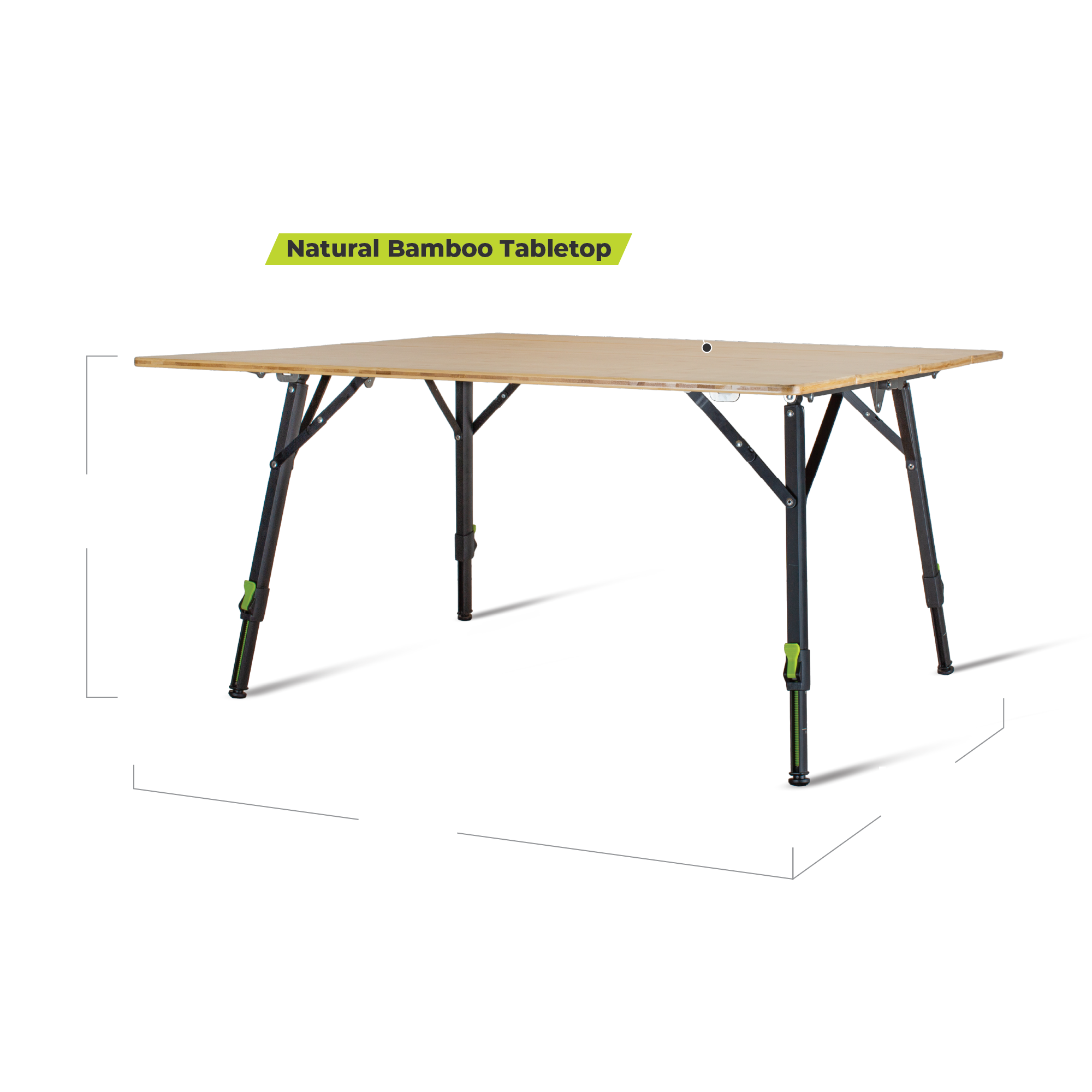 The Zempire Kitpac Pro X-Large Camping Table is premium camping furniture built for stability and style. With a strong aluminium frame, natural bamboo tabletop, adjustable height, and compact fold-down design, this table is perfect for any campsite. Includes a built-in bottle opener for added convenience.